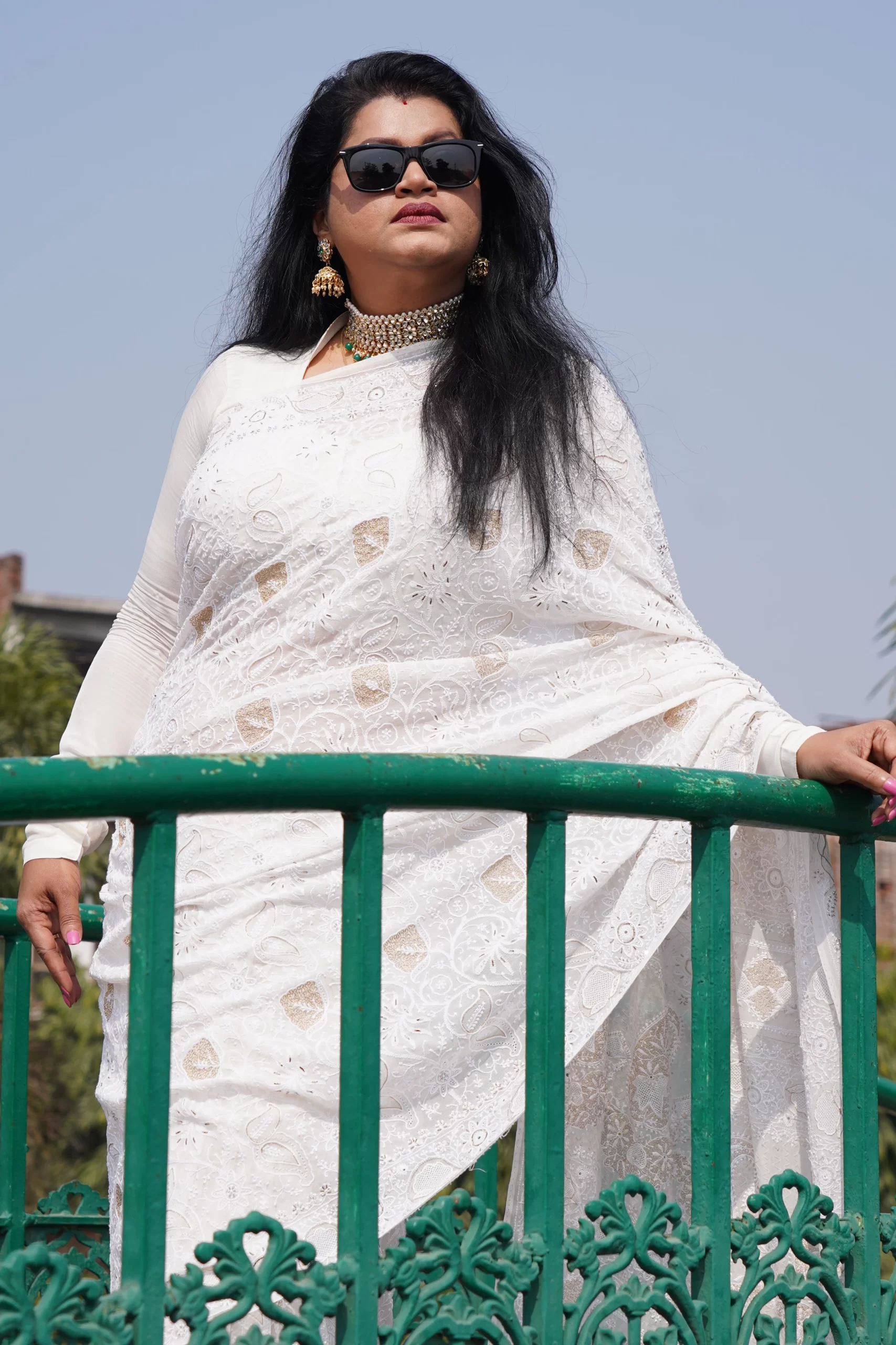 Experience elegance redefined with the “Georgette Chikankari Saree” by Rafec Chikan,