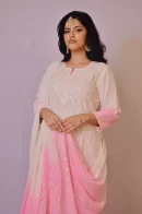 Lucknow, the hub of Chikan embroidery. This exquisite creation embodies the essence of Lucknow